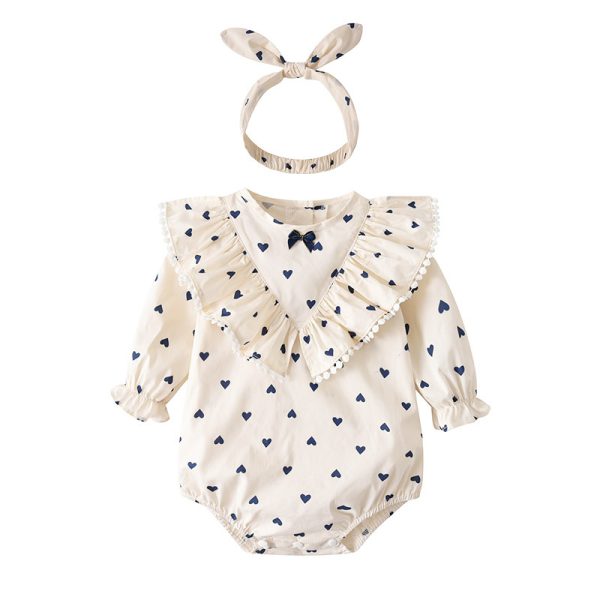 This is a pure cotton triangle climb romper for newborn baby girls ages 0-1 years who need soft, comfortable, and cozy everyday wear. Made from 100% cotton with boneless construction, it features a simple pullover style perfect for spring and autumn. The long sleeves provide warmth while keeping baby comfortable during mild weather. 100% soft…