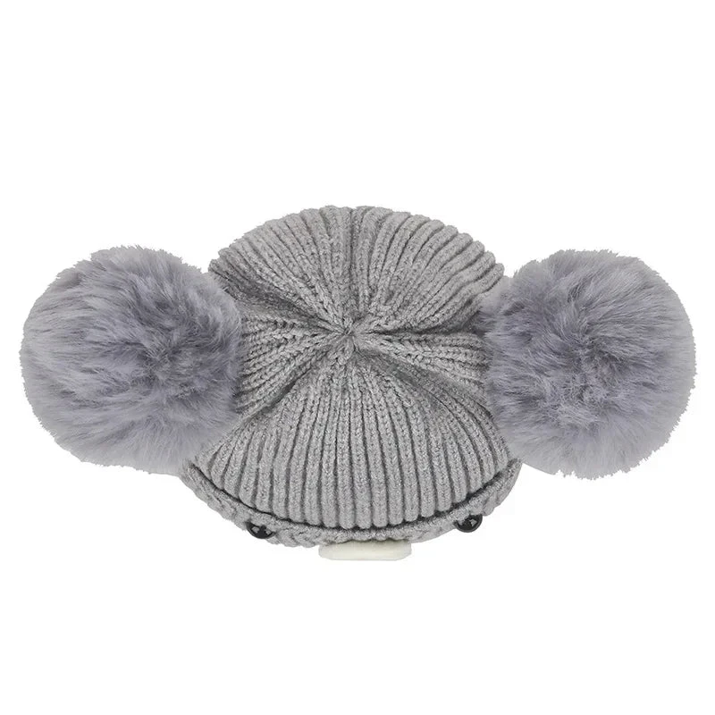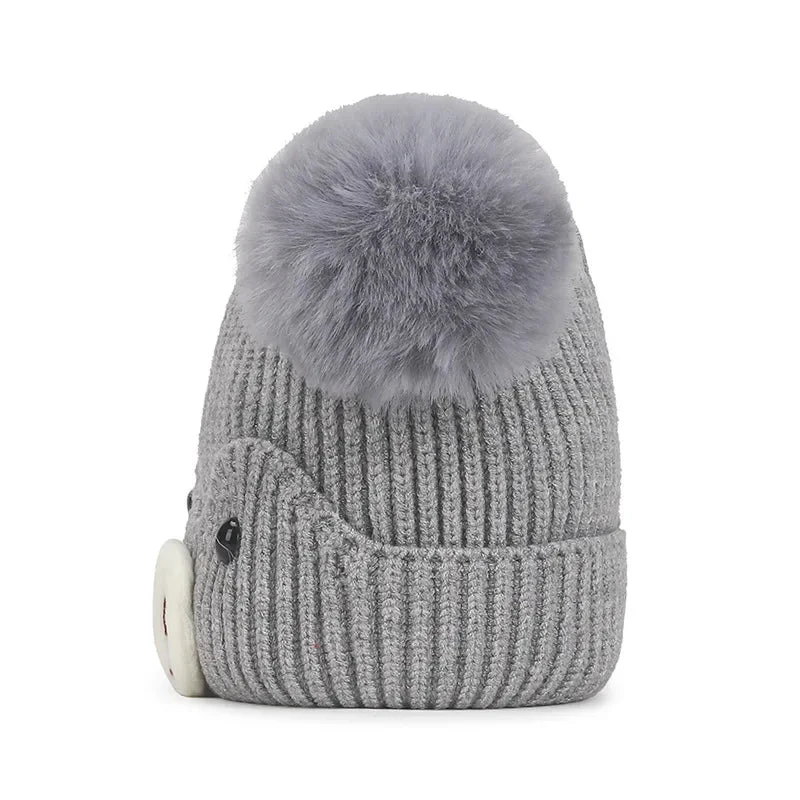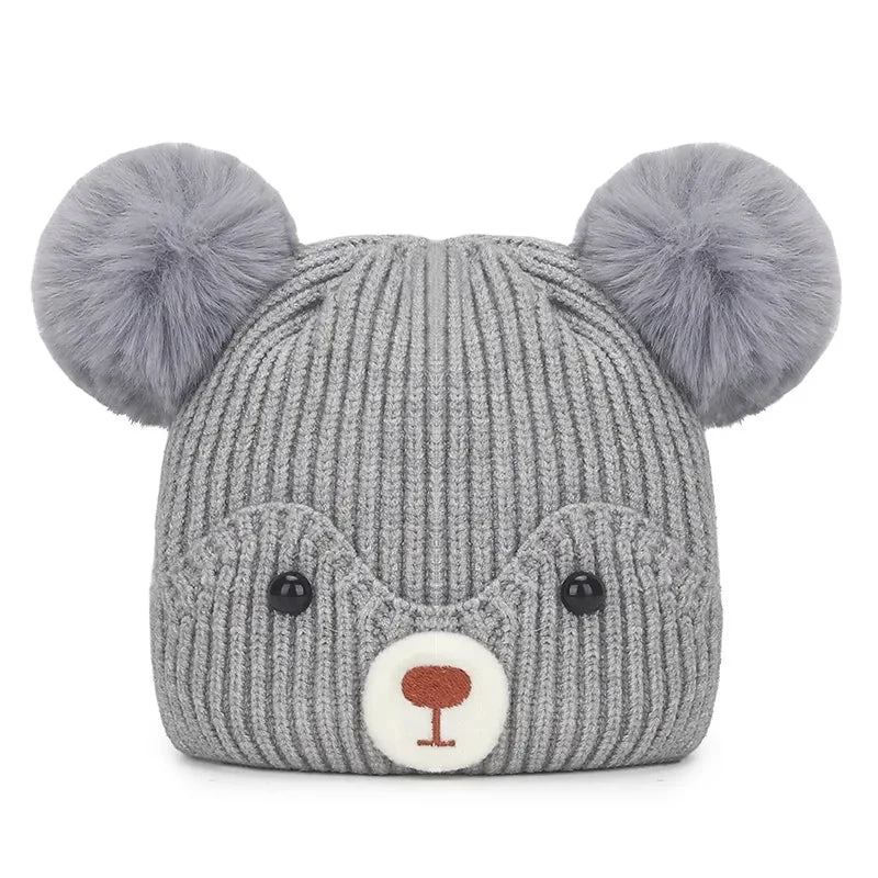 Style: Toddler knitted bear pom-pom beanie hat