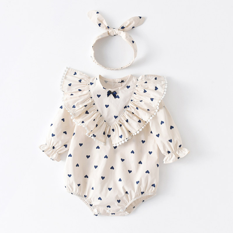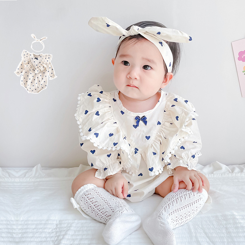This is a pure cotton triangle climb romper for newborn baby girls ages 0-1 years who need soft, comfortable, and cozy everyday wear. Made from 100% cotton with boneless construction, it features a simple pullover style perfect for spring and autumn. The long sleeves provide warmth while keeping baby comfortable during mild weather.