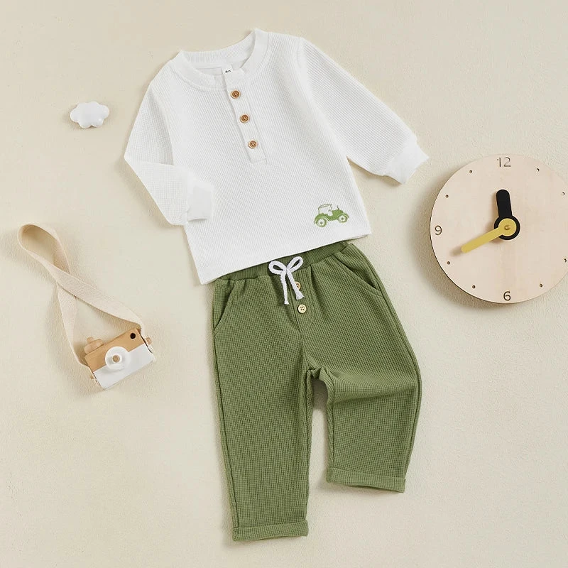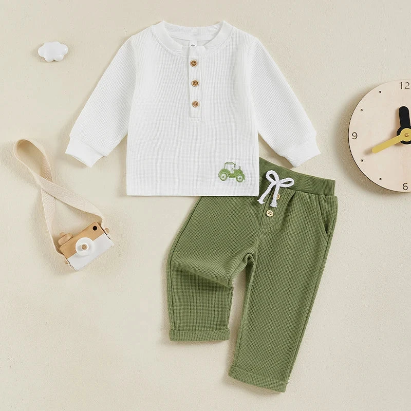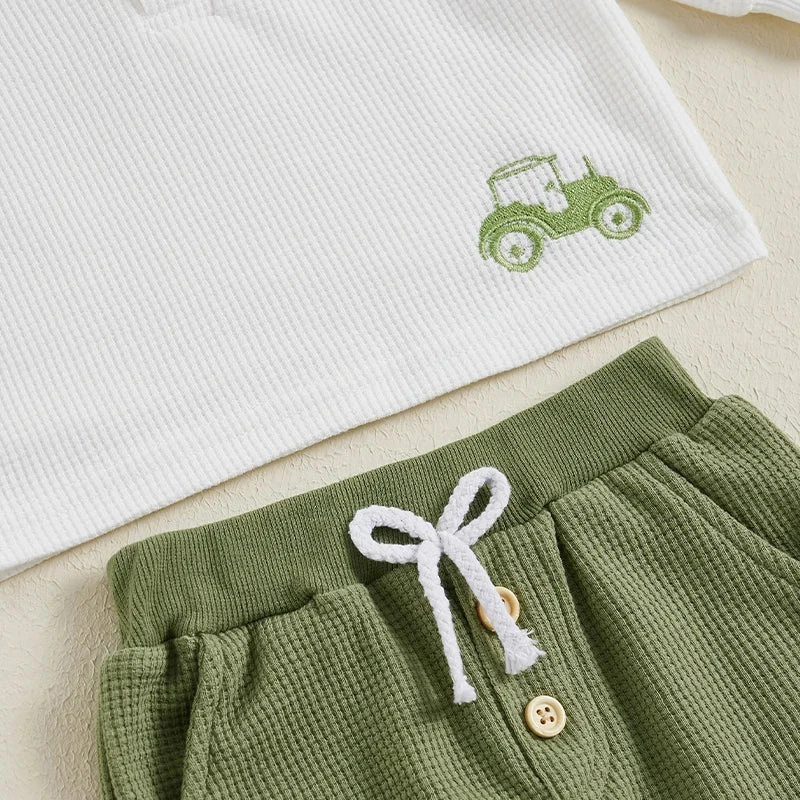 Button Tractor Boy Outfit
