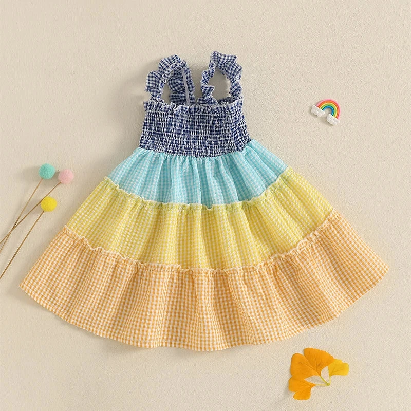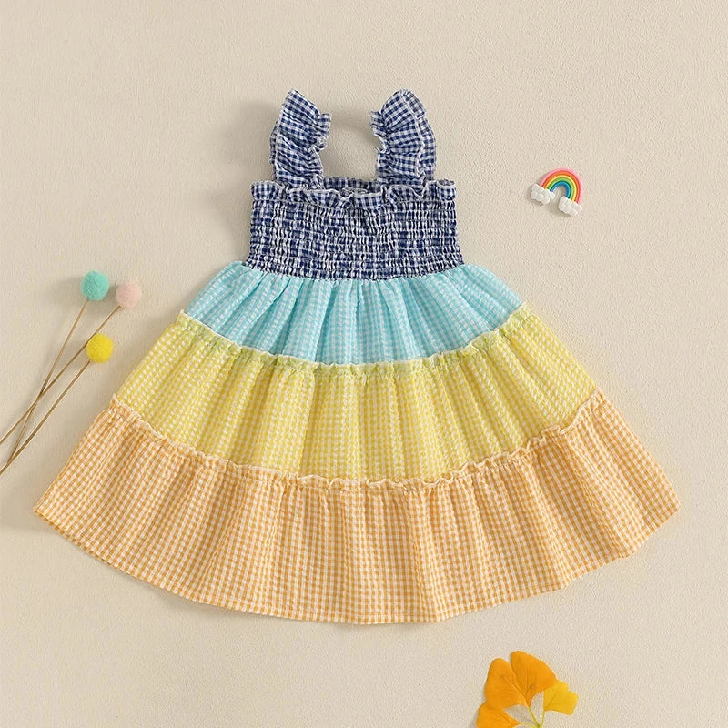 This is a sleeveless plaid print dress for baby and toddler girls who love classic patterns with a rainbow twist. Made from a soft polyester blend, it features a traditional plaid pattern infused with cheerful rainbow colors-perfect for spring and summer days. The sleeveless design keeps little ones cool and comfortable during warm-weather adventures. It solves the challenge of finding a dress that’s both timeless enough to love for seasons and playful enough to brighten any day.